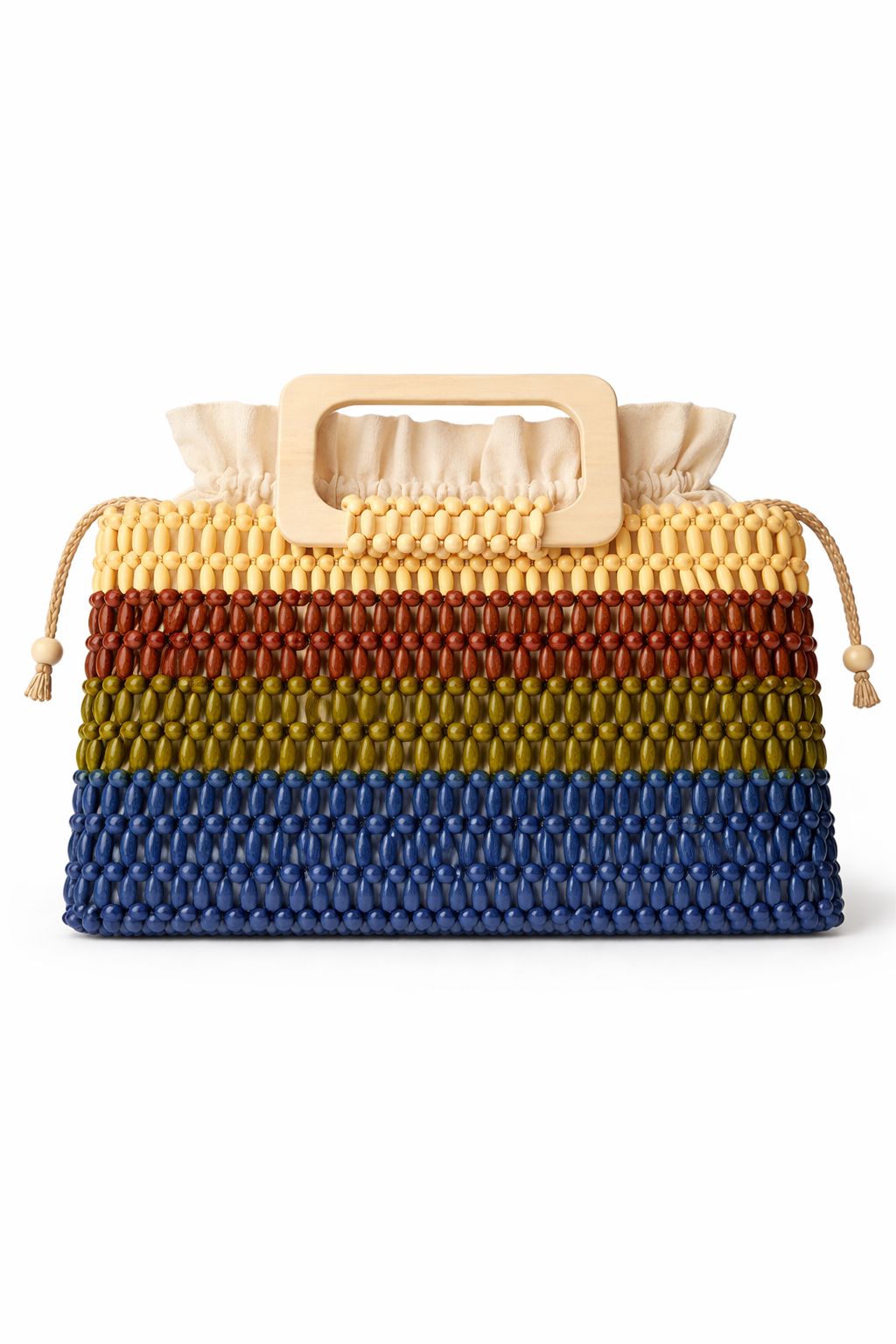 Ahşap Boncuk Örgü El Çantası – Doğal Zarafetin Zamansız Yorumu - Lacivert