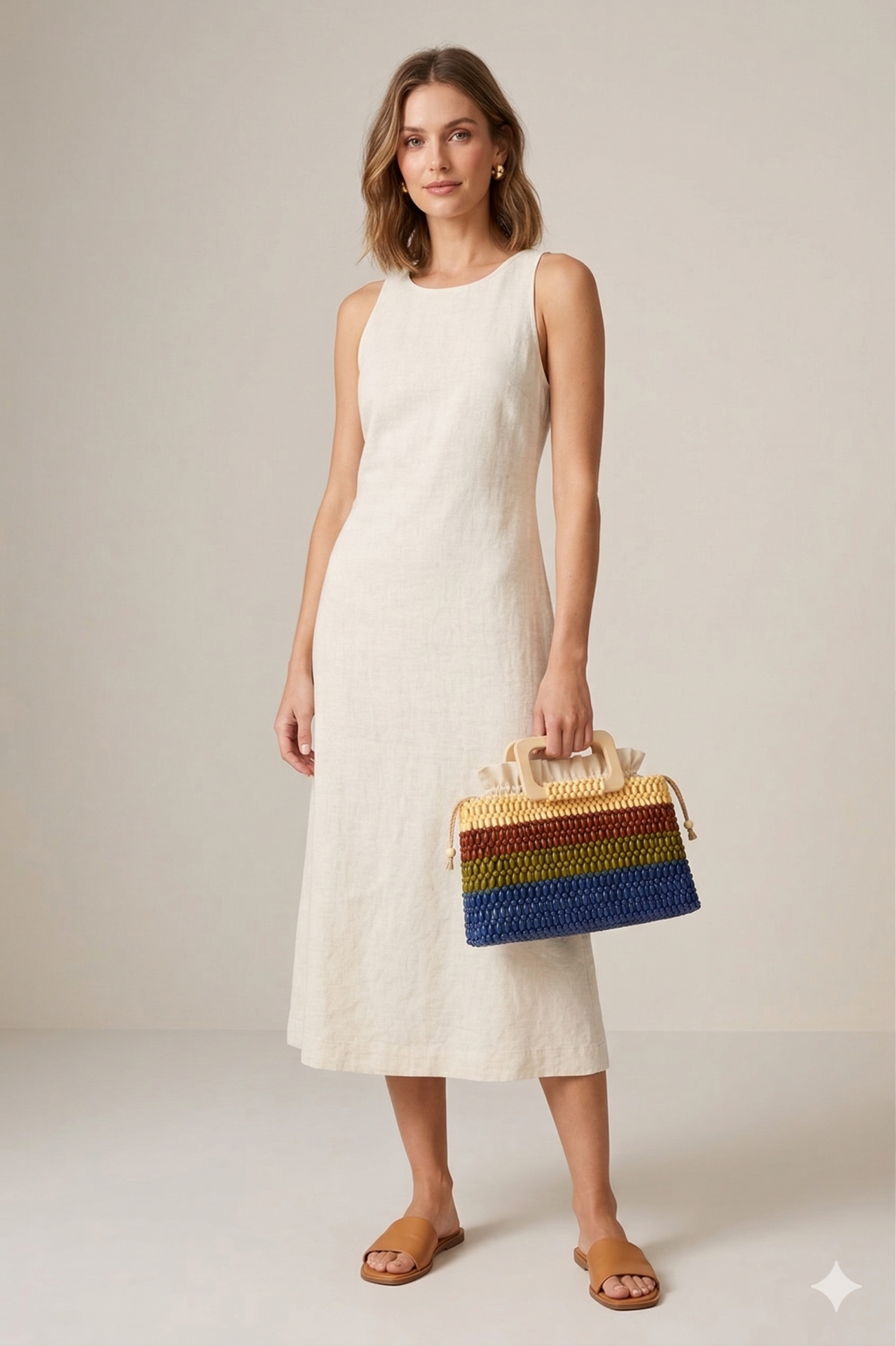 Doğal dokuların el işçiliğiyle buluştuğu Ahşap Boncuk Örgü El Çantası, sıcak ahşap sap detayı ve özgün boncuk örgü yüzeyiyle sofistike bir stil sunar. İç kısmındaki büzgülü kumaş astar, hem güvenli kullanım sağlar hem de tasarıma yumuşak bir denge katar. Günlük şıklıktan özel davetlere kadar her kombine karakter kazandıran zamansız bir parçadır.