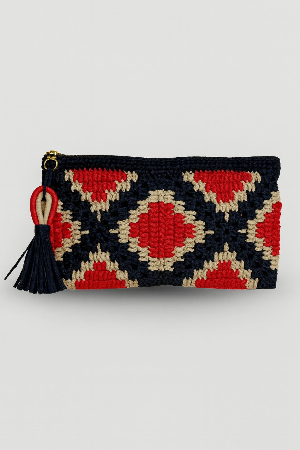 Anadolu Clutch, el işçiliğiyle örülmüş geometrik desenleriyle geleneksel zarafeti modern bir stille buluşturur. Kahverengi, siyah ve hardal tonlarının uyumu; doğadan ve Anadolu’nun zengin kültürel dokusundan ilham alır. El yapımı püskül detayıyla dikkat çeken bu clutch, sade kombinlere karakter, şık akşam stillerine ise özgün bir dokunuş katar.