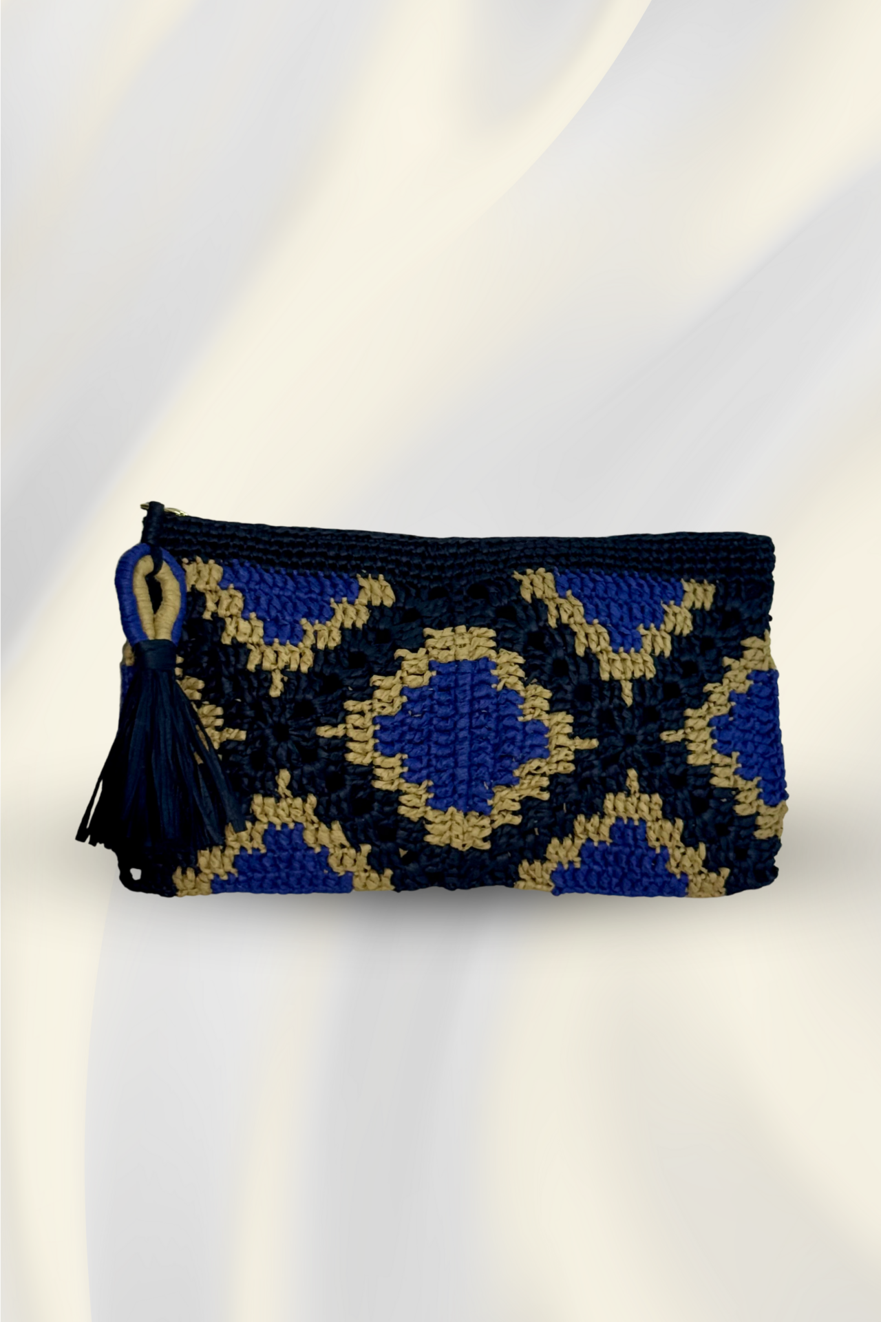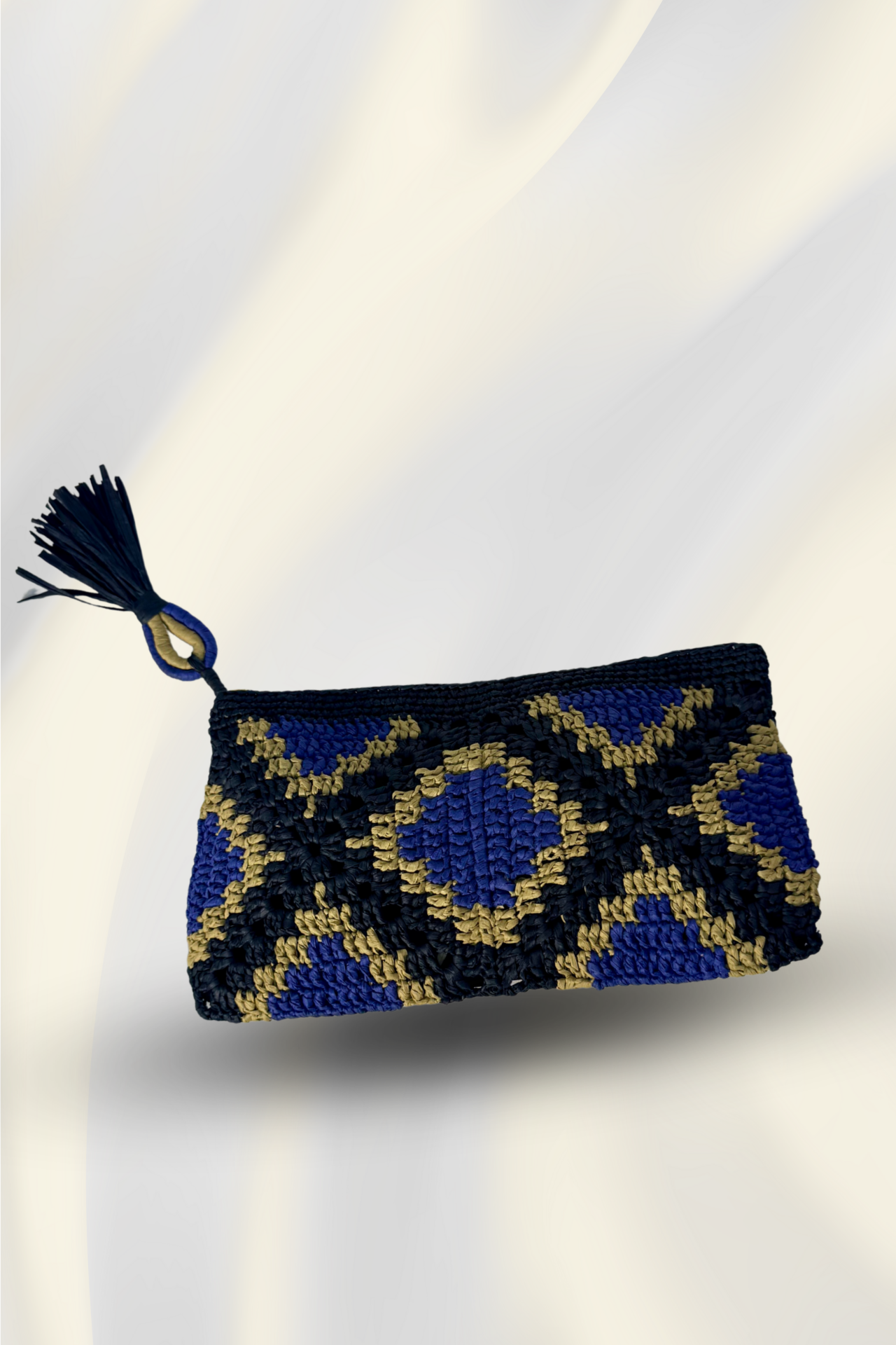 Anadolu Clutch, el işçiliğiyle örülmüş geometrik desenleriyle geleneksel zarafeti modern bir stille buluşturur. Kahverengi, siyah ve hardal tonlarının uyumu; doğadan ve Anadolu’nun zengin kültürel dokusundan ilham alır. El yapımı püskül detayıyla dikkat çeken bu clutch, sade kombinlere karakter, şık akşam stillerine ise özgün bir dokunuş katar.