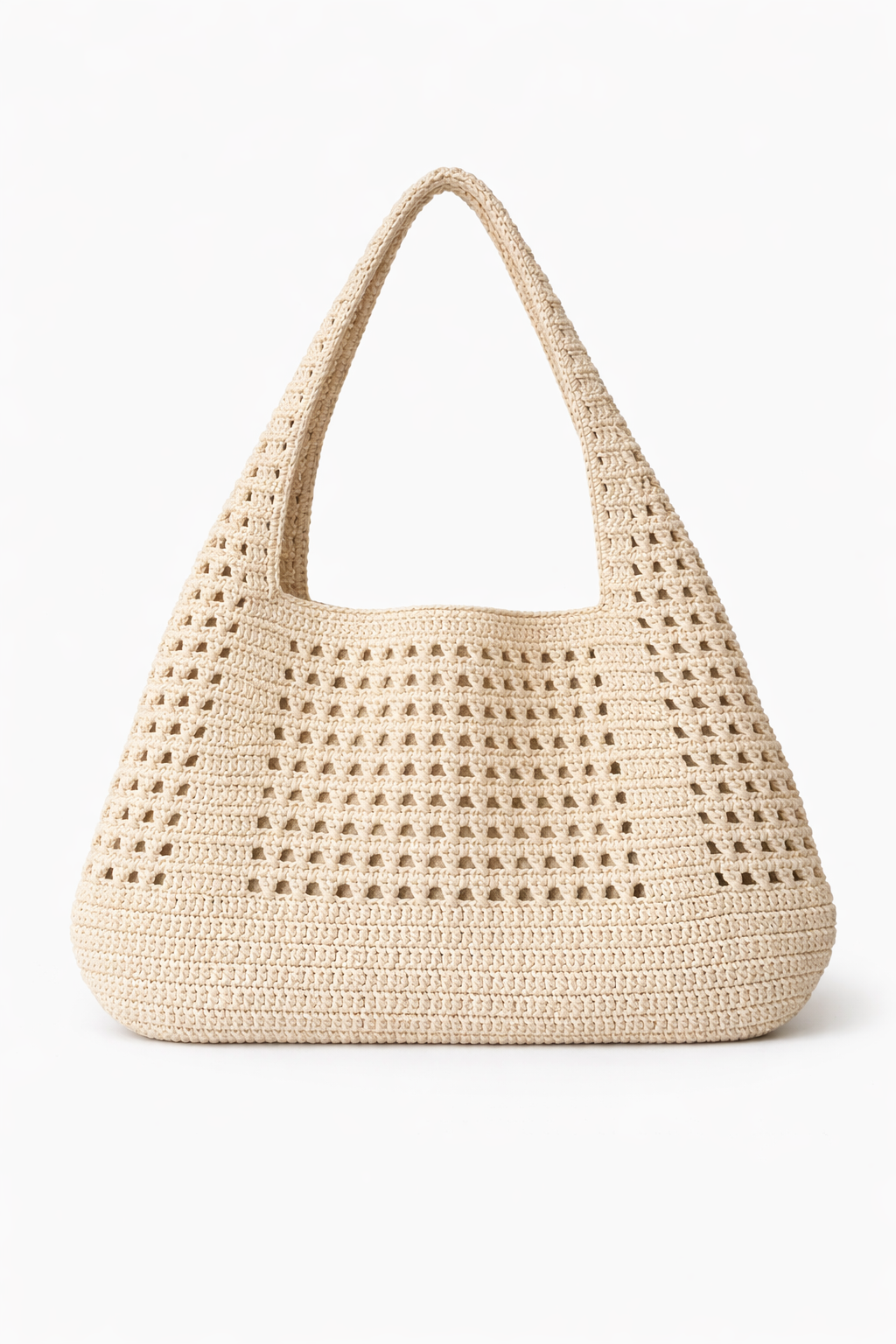 Büyük Rafya Örgü Çanta - Krem