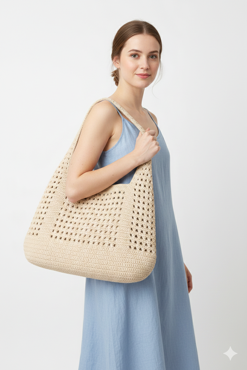 Büyük Rafya Örgü Çanta – Doğal ve Rahat Stil -