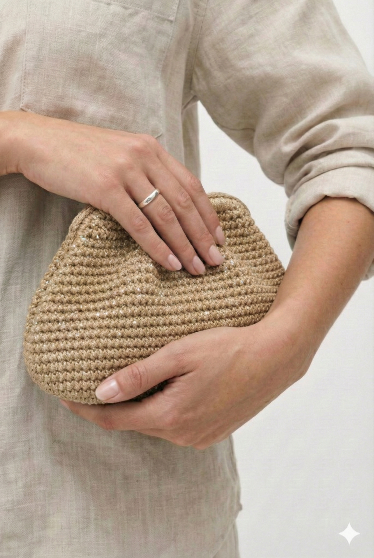 El yapımı örgü dokusu ve yumuşak formuyla öne çıkan bu çanta, günlük şıklığı sade bir zarafetle buluşturur. Büzgü detaylı ağız yapısı hem estetik hem de kullanışlı bir görünüm sunarken, modern ve zamansız tasarımıyla her stile kolayca uyum sağlar. Günlük kullanımdan özel anlara kadar stilinizi tamamlayacak özgün bir parçadır.