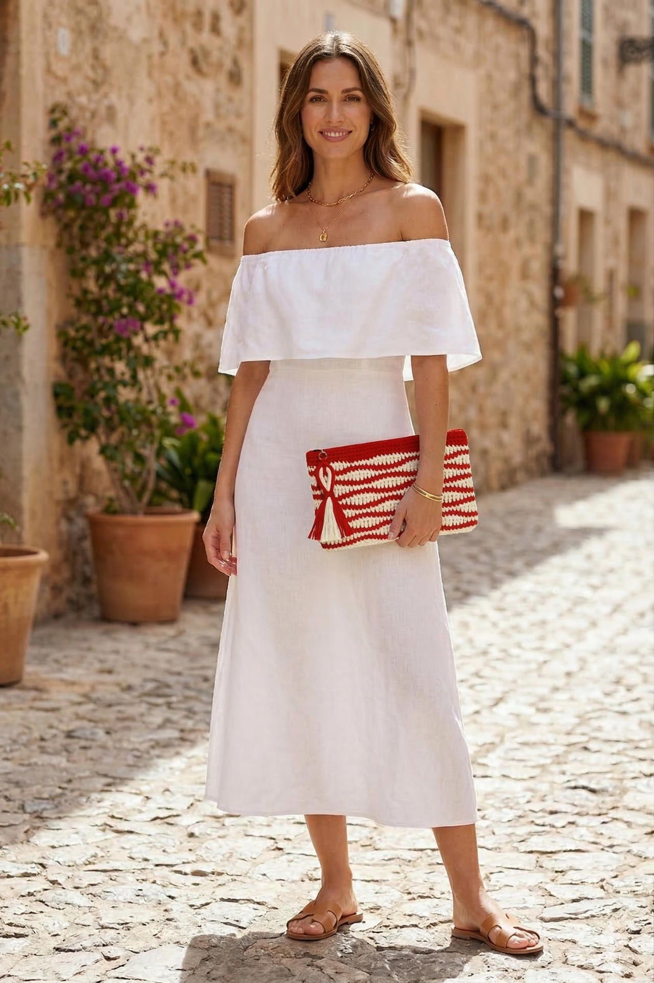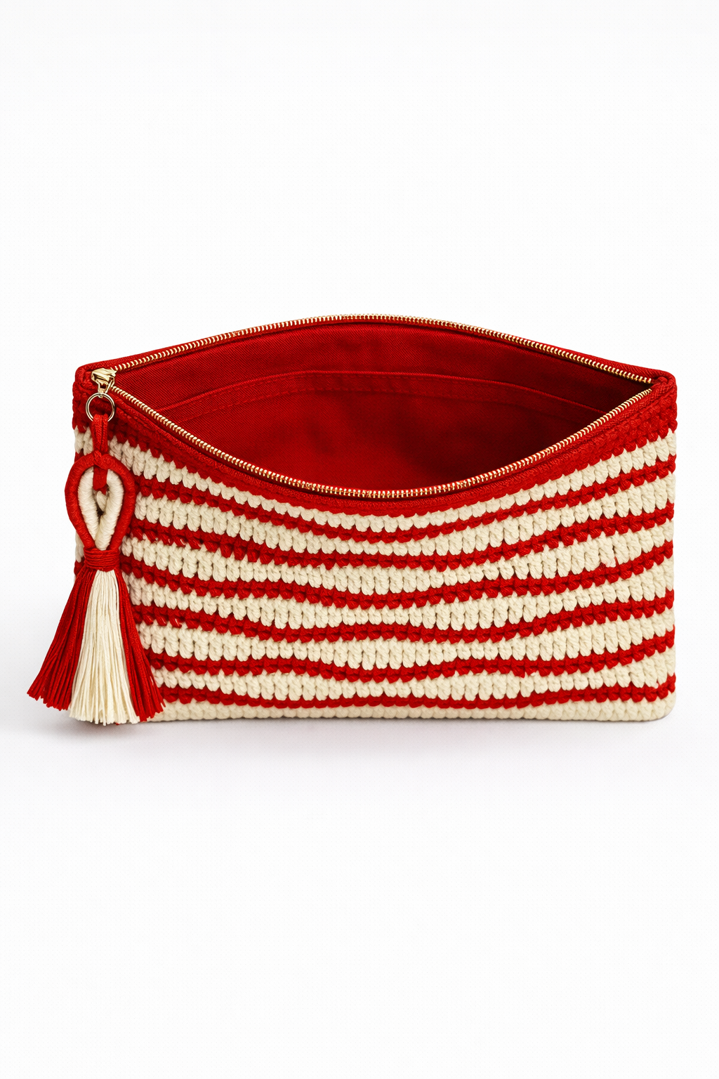 Dalga Clutch – Doğal Işıltı - Kırmızı&Beyaz