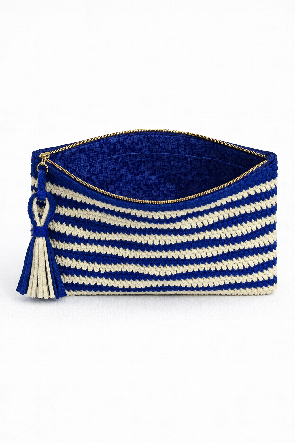 Dalga Clutch – Doğal Işıltı - Mavi&Beyaz