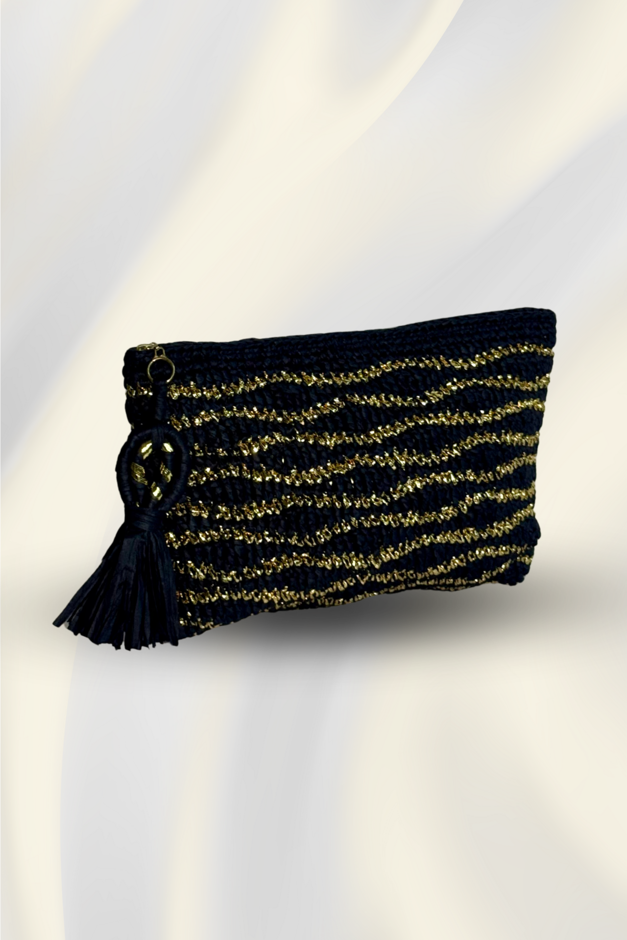 Dalga Clutch – Doğal Işıltı - Siyah&Gold