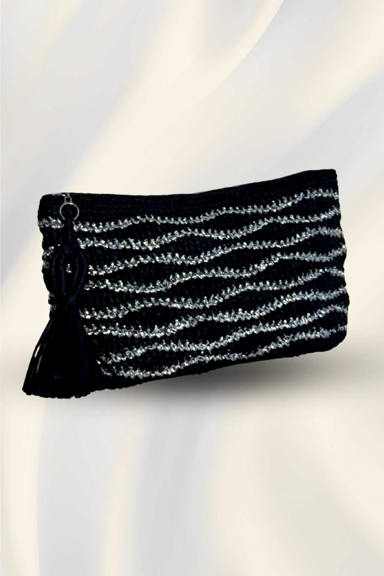 Dalga Clutch – Doğal Işıltı - Siyah&Gümüş