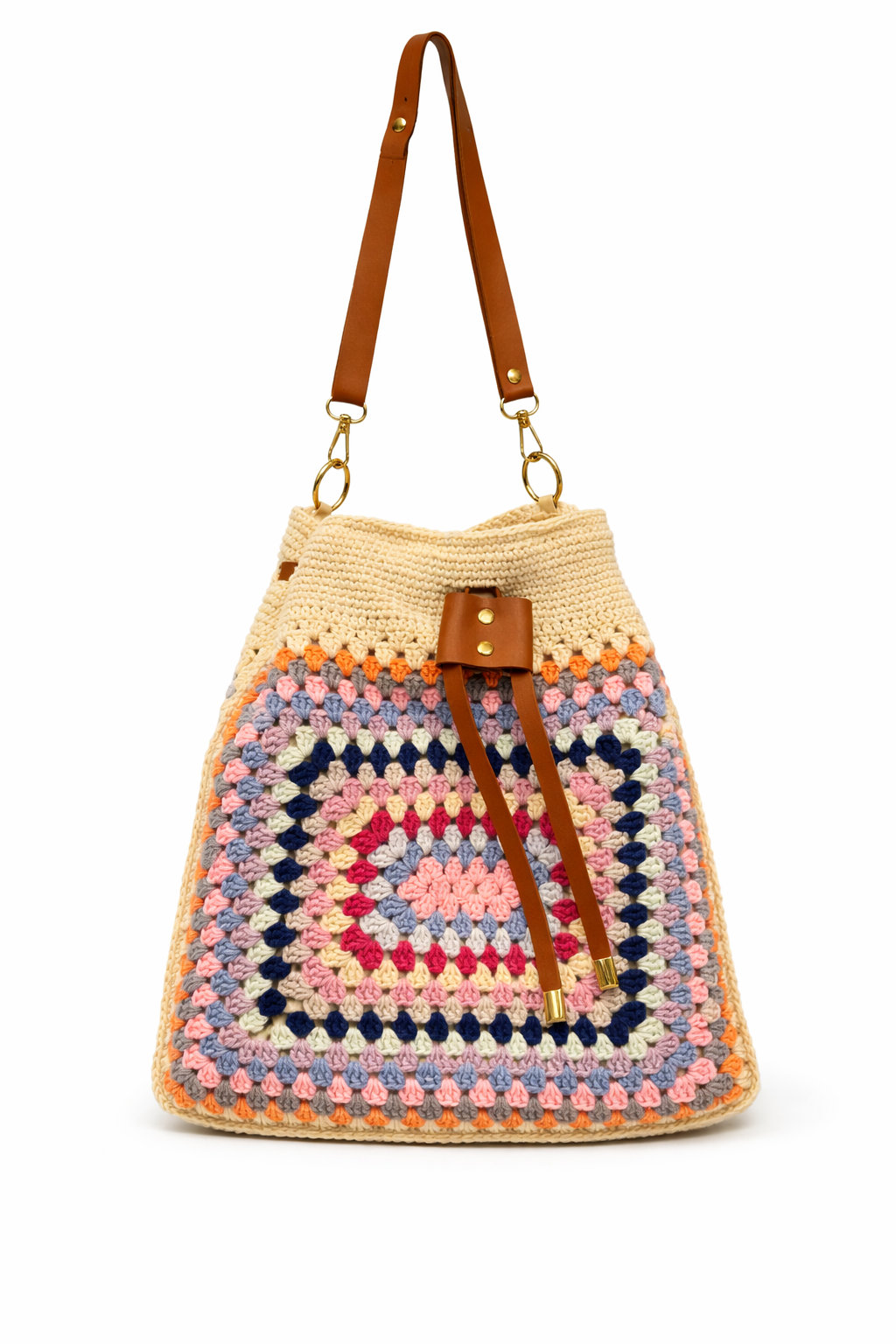 Deri Askılı Heybe Çanta – Renkli El Örgüsü Şıklığı - Bej