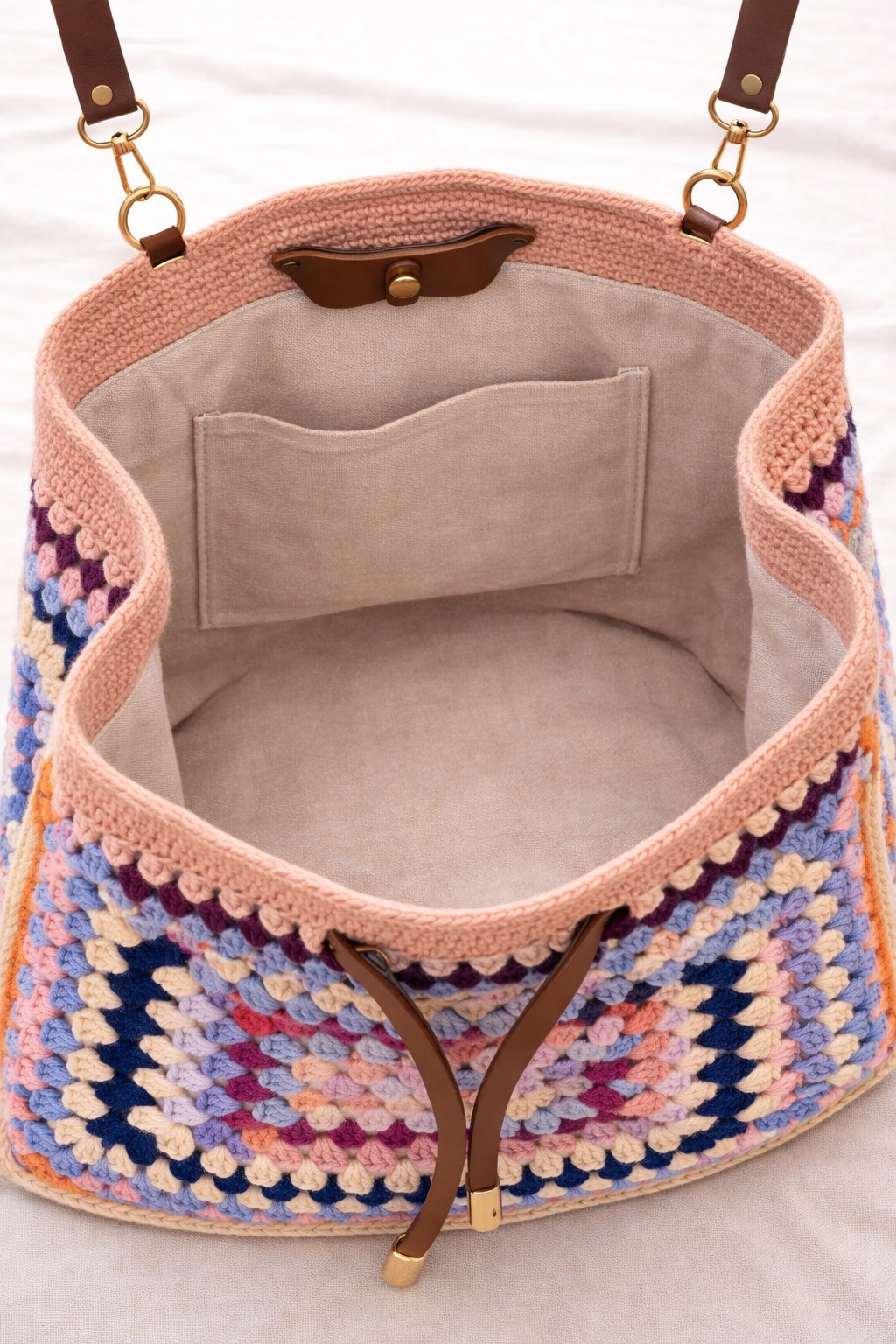 Canlı renk geçişleri ve el örgüsü heybe formu ile öne çıkan bu çanta, geleneksel dokuyu modern detaylarla buluşturur. Deri askı detayı sayesinde hem sağlamlık hem de şık bir görünüm sunarken, geniş iç hacmi ile günlük kullanımda maksimum konfor sağlar. Renkli ve enerjik tasarımı sayesinde kombinlerinize karakter katar.