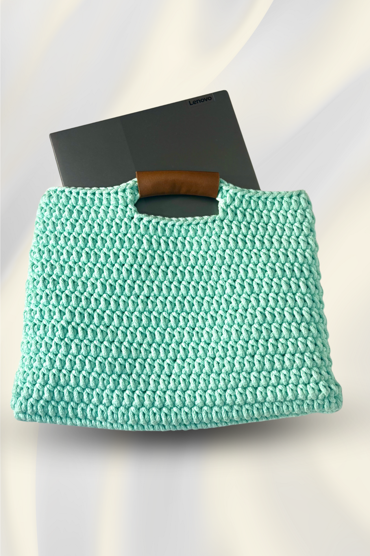 Deri Dokunuş Örgü Bilgisayar Çantası – El Emeği Zarafet - Yeşil