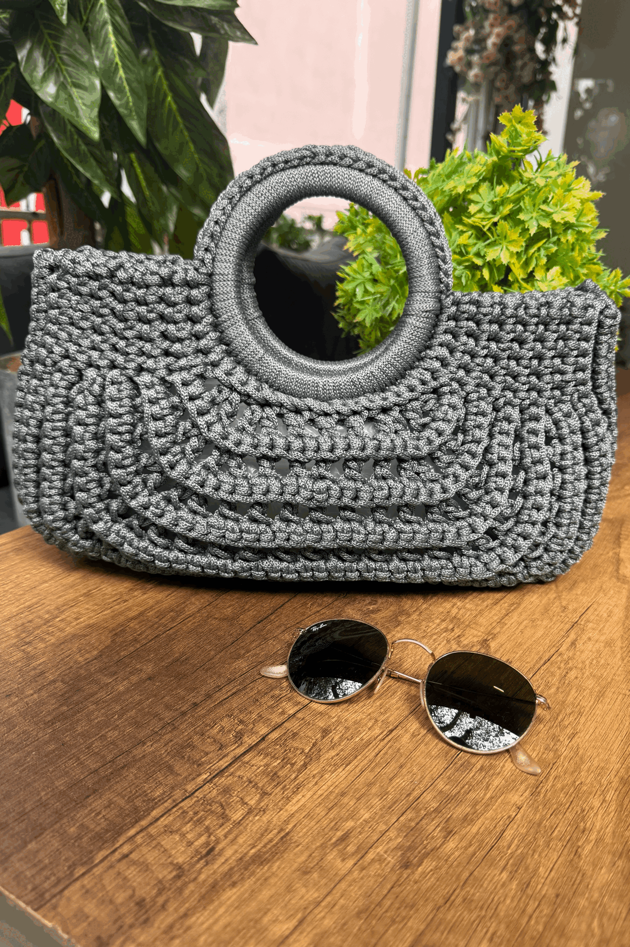 - Malzeme: Simli Polyester Mahremi, Örgü ile Çerçevelenmiş Akrilik Sap