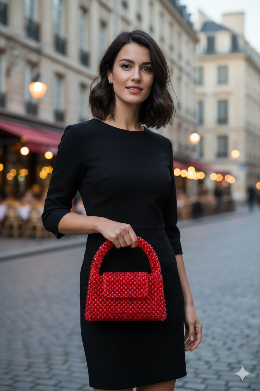 Kristal Boncuk El Çantası – Işıltılı Şıklığın Zamansız Yorumu - Kırmızı