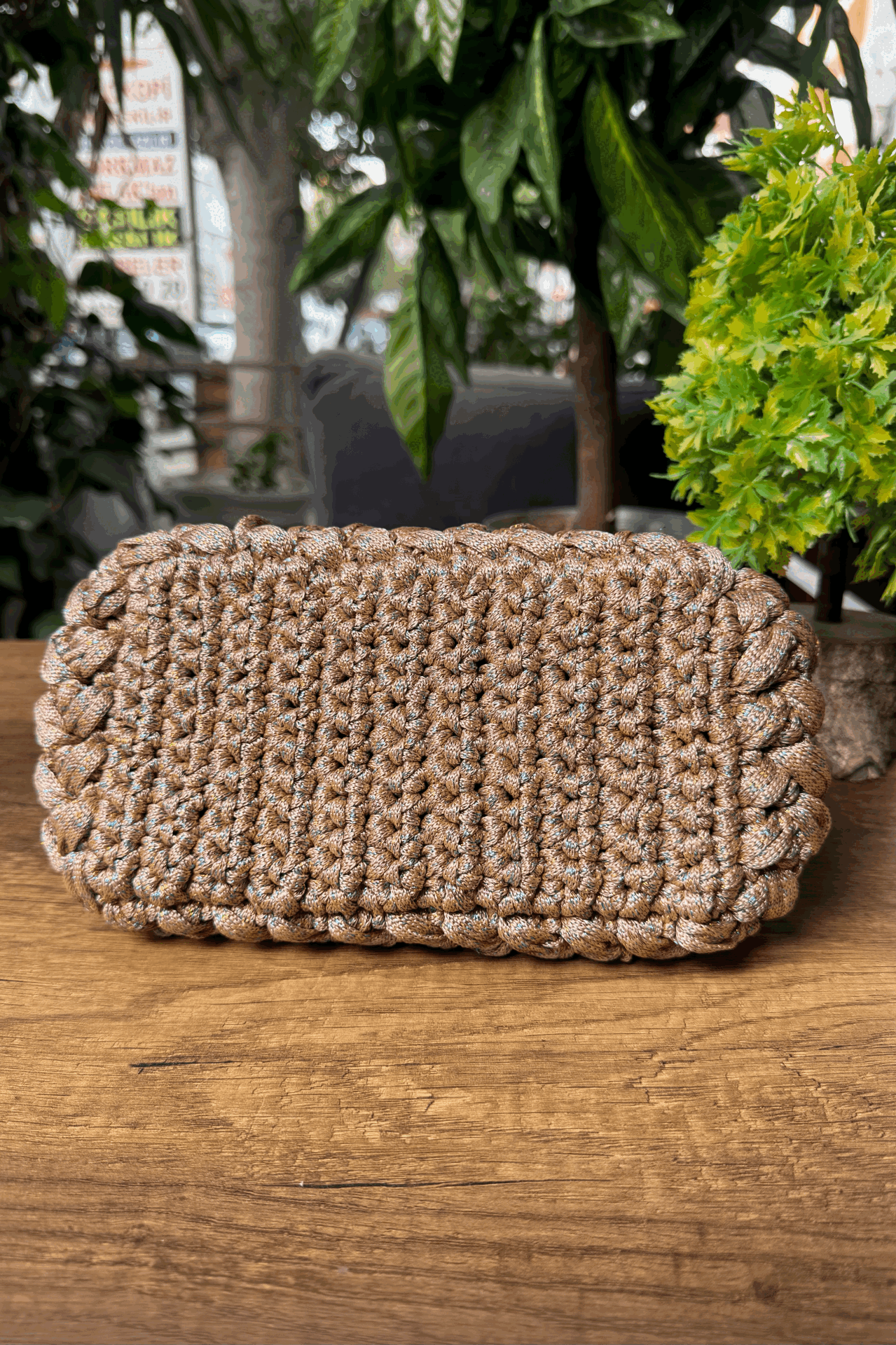 Kristal Örgü Gece Çantası – Minimal Lüks - Kahverengi