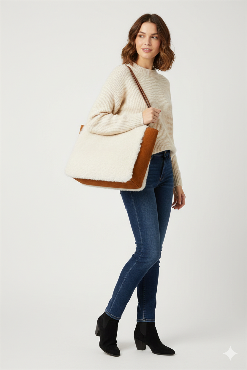 Soğuk günlerin vazgeçilmezi olan Kürklü Süet Çanta, yumuşak kürk dokusu ve süet detaylarıyla konforu ve şıklığı bir araya getirir. Geniş iç hacmi ve zamansız formu sayesinde hem günlük kullanımda hem de şehir stilinde güçlü bir tamamlayıcıdır. Doğal dokusu ile sıcak, sade ama iddialı bir görünüm sunar.