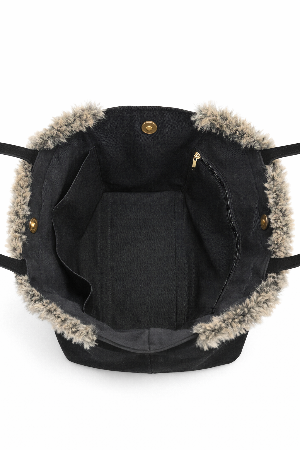 Kürklü Süet Çanta - Siyah