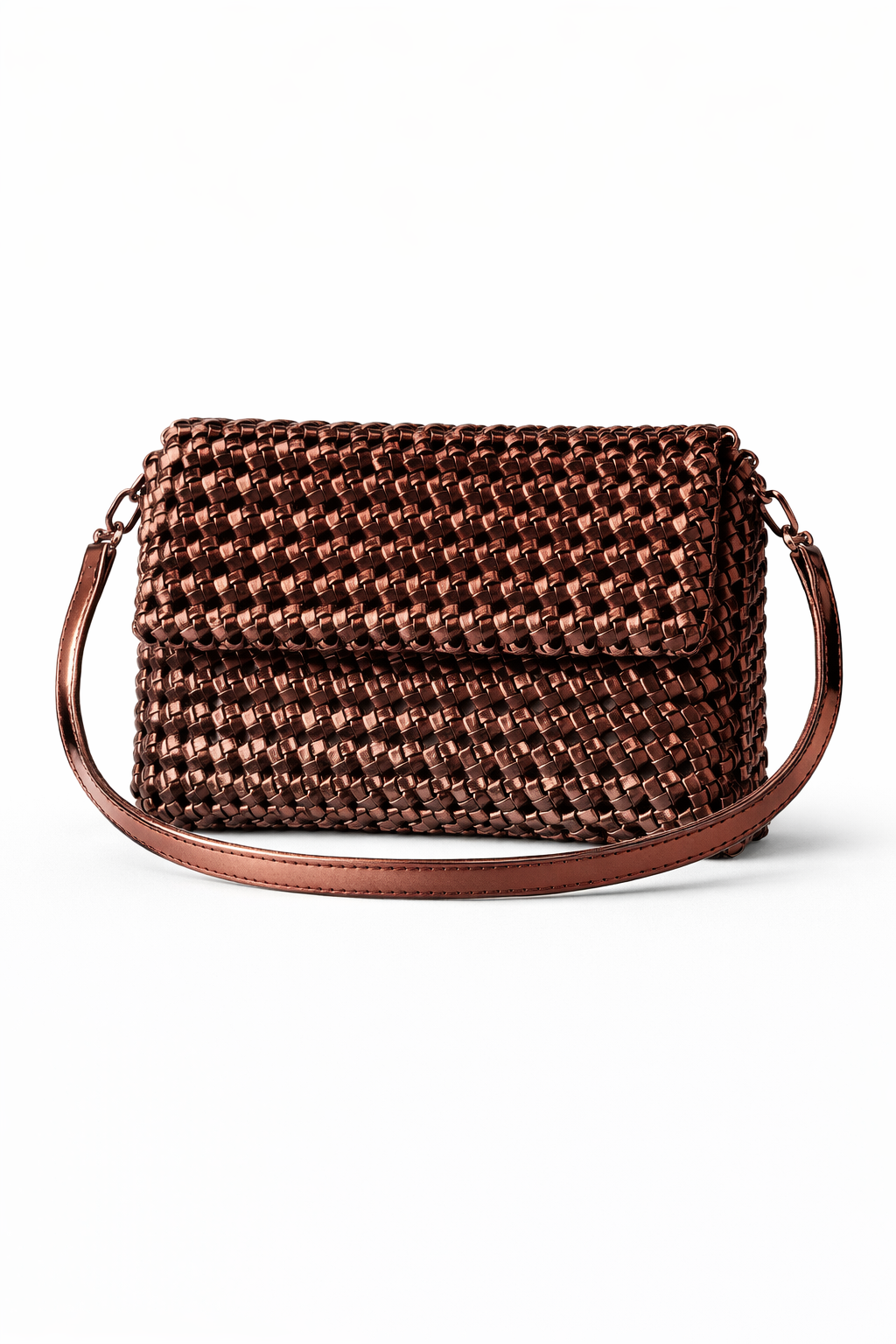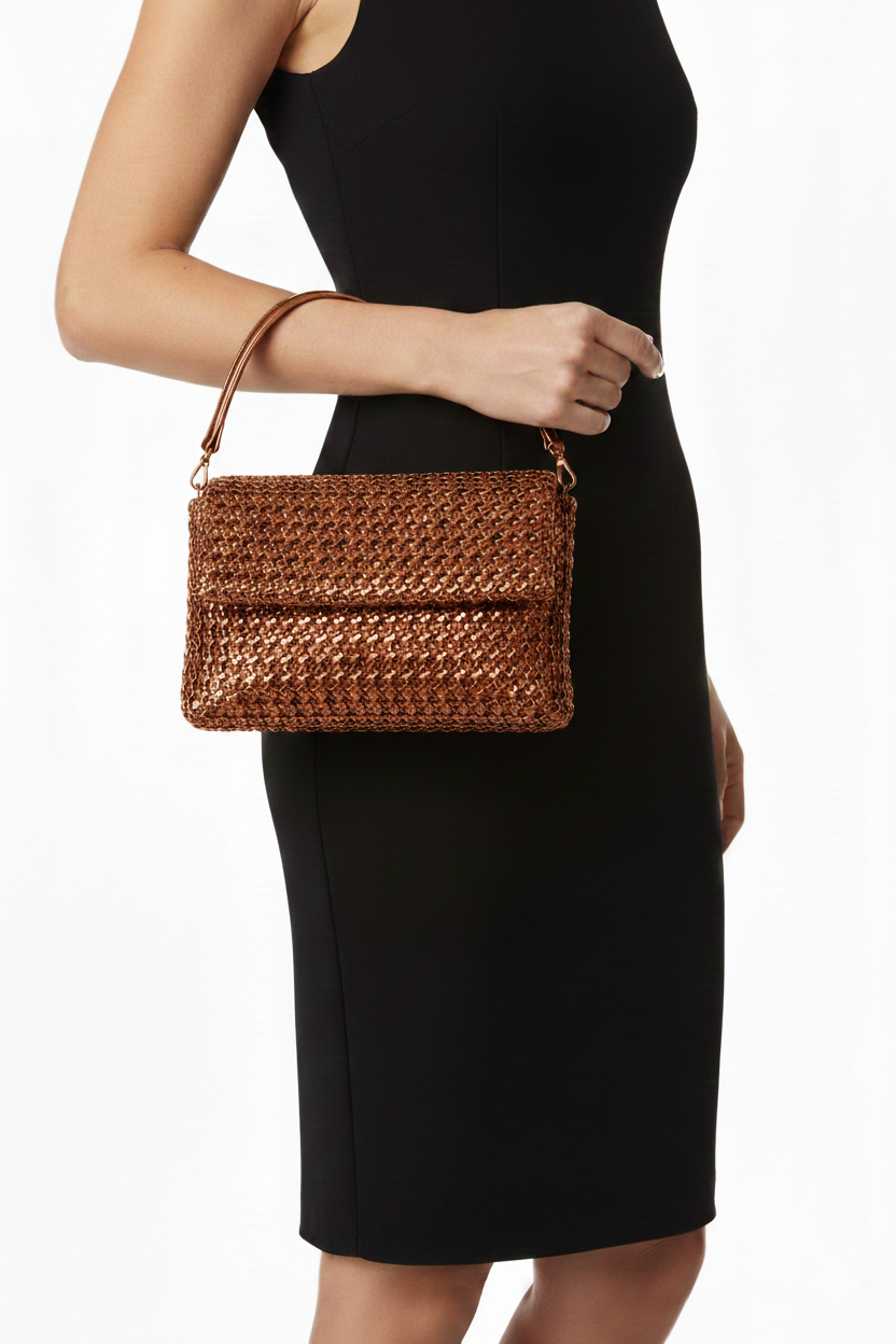 Metalik Örgü Omuz Çantası – Modern Işıltının Zamansız Yorumu - Bronz