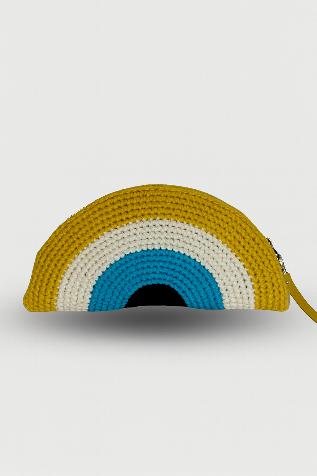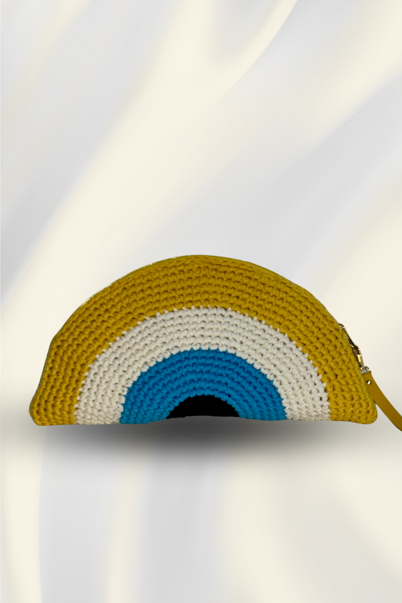 Nazar Clutch, geleneksel motiflerden ilham alan modern bir tasarıma sahiptir. Yarım daire formu, dikkat çekici renk geçişleri ve el işçiliğiyle örülmüş yapısı sayesinde hem günlük kombinlerde hem de özel günlerde zarif bir dokunuş sunar. Uç kısmındaki püskül detayı ise çantaya hareket ve zarafet katar.