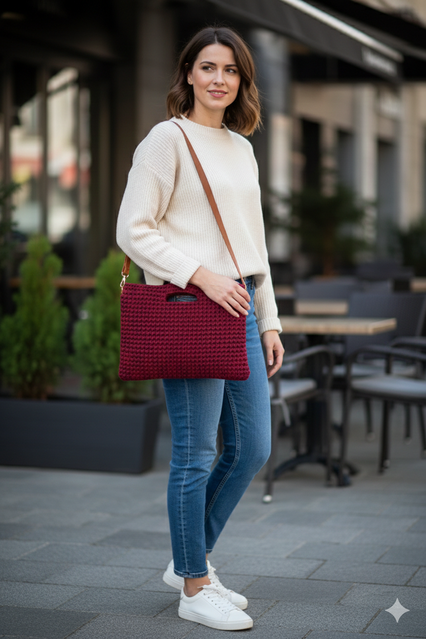 Örgü Laptop Çantası – Sade Şıklık - Bordo