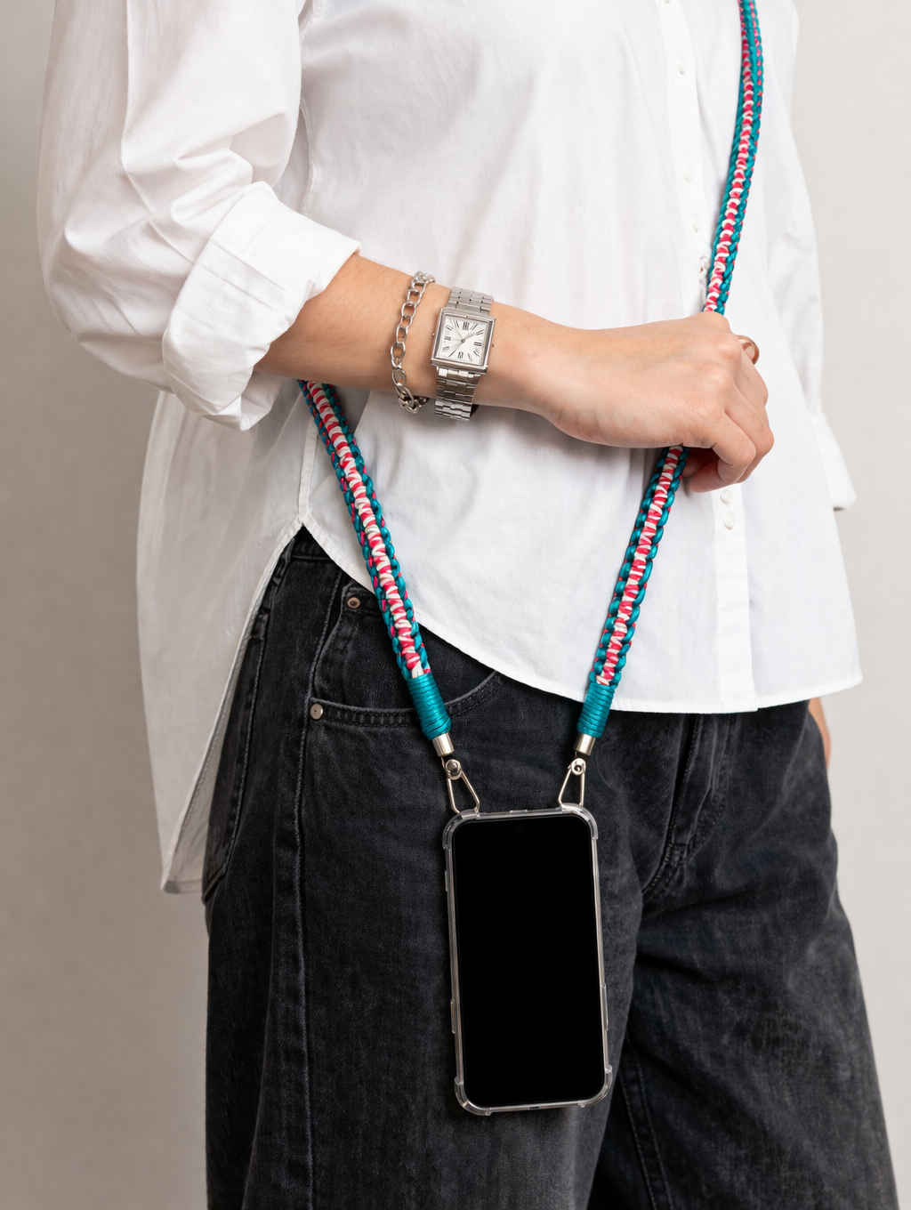 Canlı renklerin enerjisini taşıyan bu örgü telefon askısı, günlük kullanımda hem konfor hem de stil sunar. El işçiliğiyle örülen dayanıklı yapısı sayesinde telefonunuzu güvenle taşımanızı sağlarken, uzun formu ile çapraz veya omuzda rahat kullanım imkanı sunar. Renkli tasarımıyla sade kombinlere hareket katar.