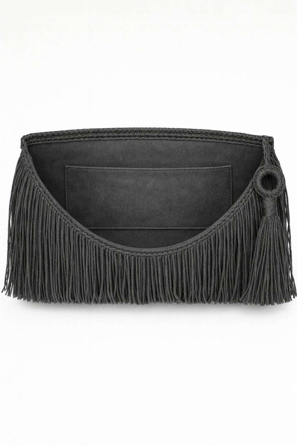 Püskül Clutch Koleksiyonu, kağıt ipin doğal dokusunu hareketli püsküllerle buluşturarak sıradışı bir şıklık sunar. Hafif yapısıyla günlük kullanımda konfor sağlar, özgün tasarımıyla ise özel buluşmalarda stilinizi ön plana çıkarır. Modern ve enerjik havasıyla her kombine farklı bir karakter katar.