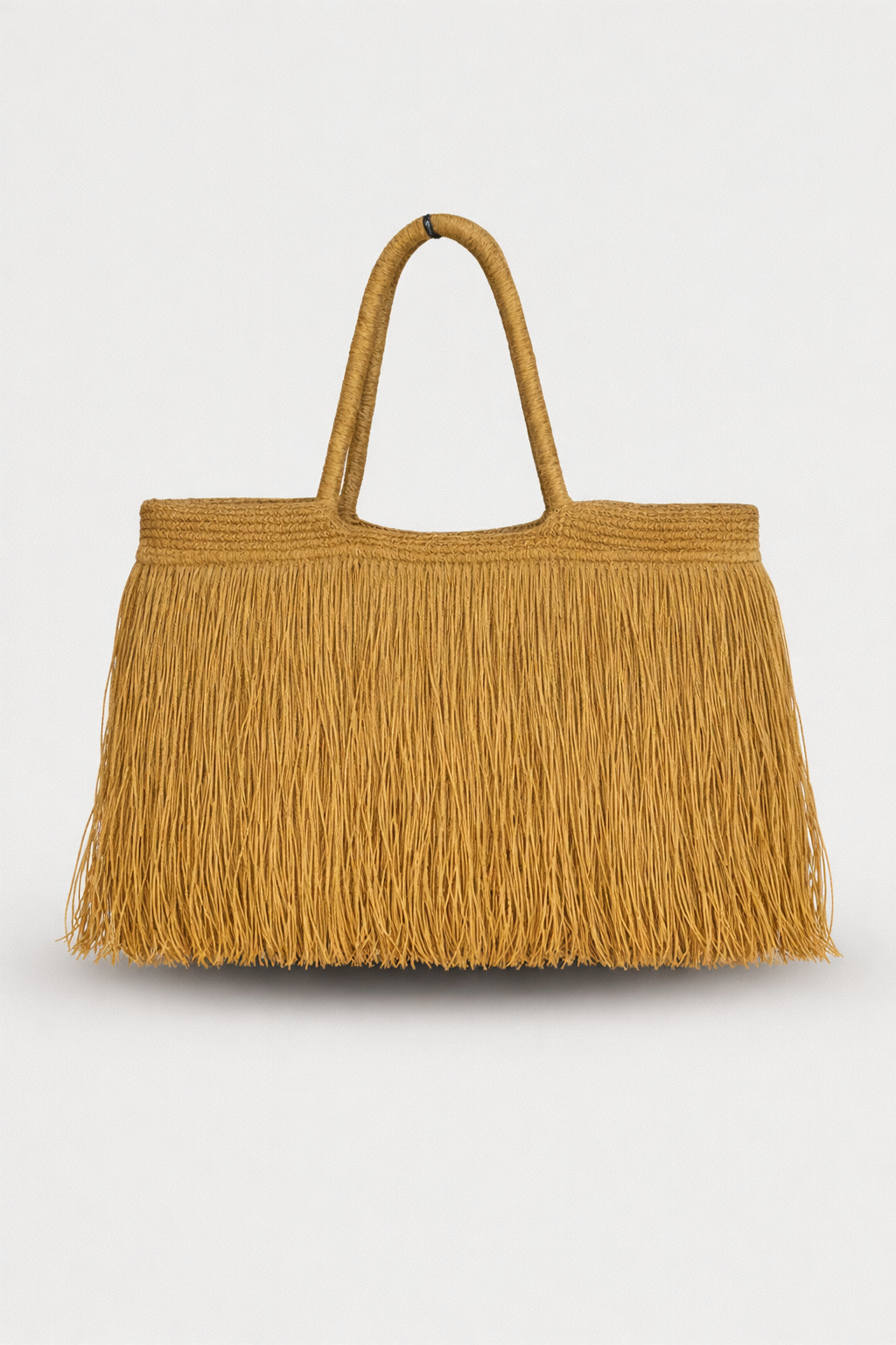 Püskül Tote Koleksiyonu, kağıt ipin doğal dokusunu özgün püskül tasarımıyla buluşturan büyük boy bir çanta serisidir. Geniş iç hacmiyle hem günlük şehir hayatında hem de plajda rahat kullanım sağlar. Hafif yapısı ve bohem havası, enerjik bir tarz yaratırken doğallığıyla da zamansız bir şıklık sunar.