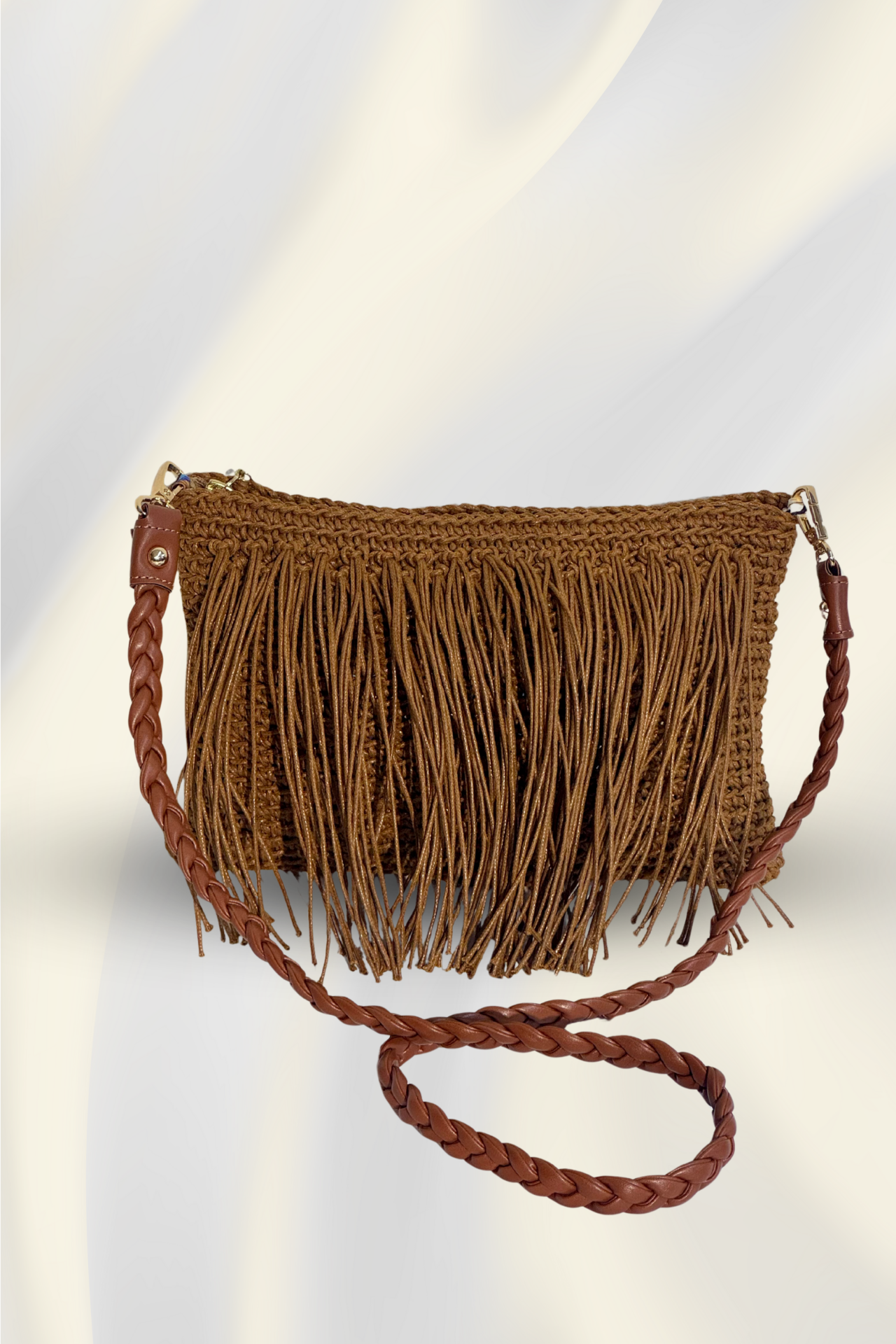 Püskül detaylı bu el yapımı çanta, bohem ruhu modern çizgilerle buluşturur. Zeytin yeşili tonuyla doğadan ilham alır, örgü dokusu ve deri örgü askısı ile sade ama iddialı bir stil yaratır. Hem gündüz hem akşam kombinlerinde fark yaratmak isteyenler için zamansız bir tamamlayıcıdır.