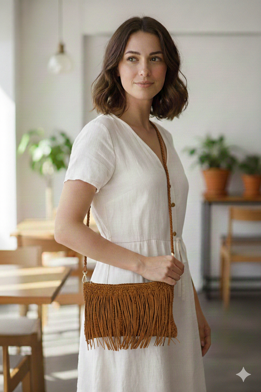 Püskül Zarafeti Çanta – Doğal Şıklığın Temsilcisi - Kahverengi