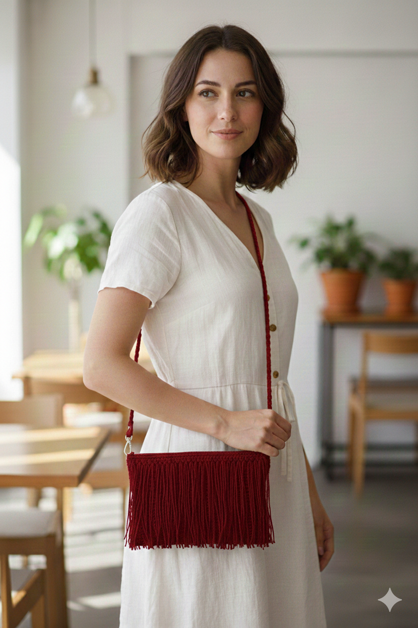 Püskül Zarafeti Çanta – Doğal Şıklığın Temsilcisi - Kırmızı