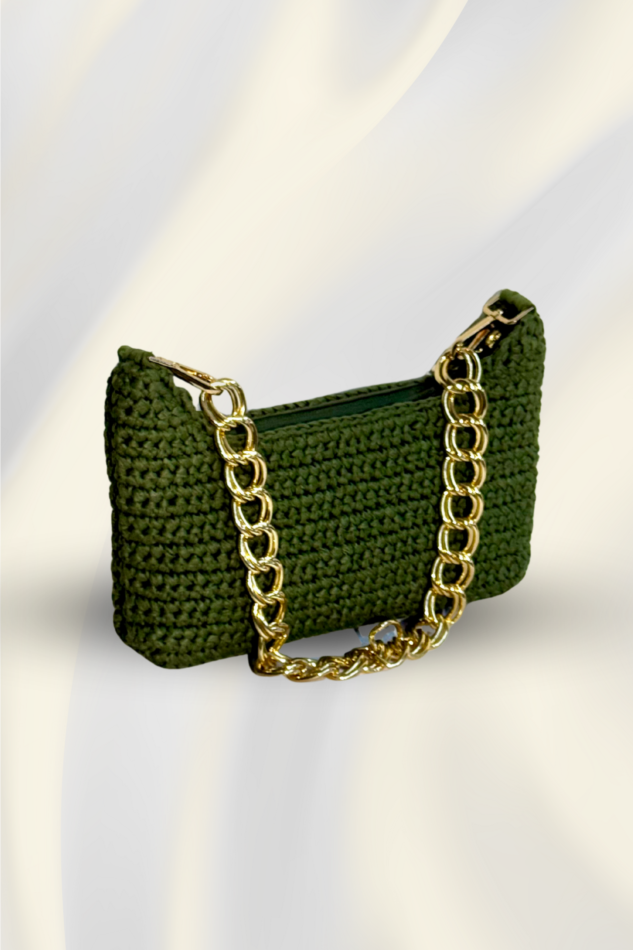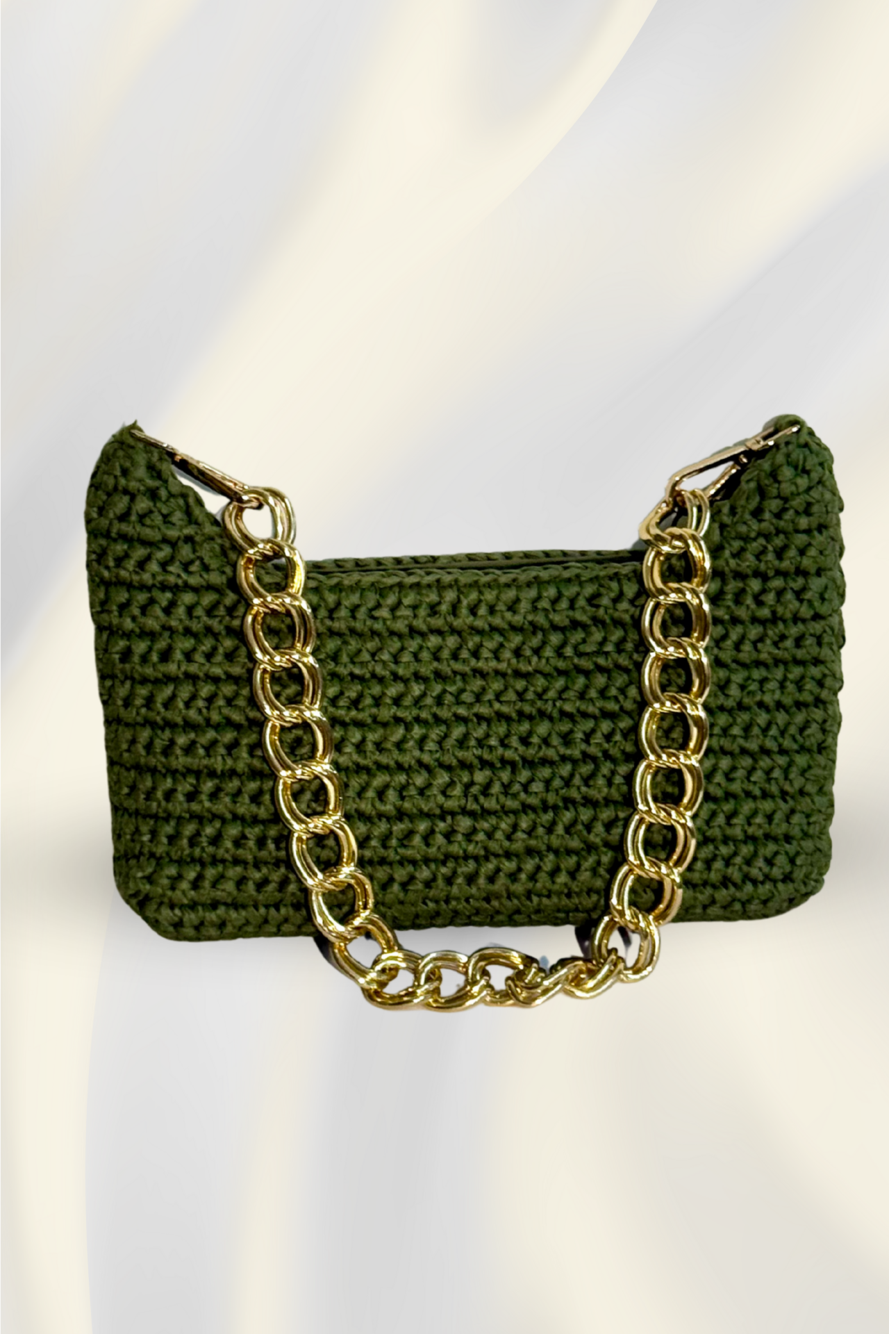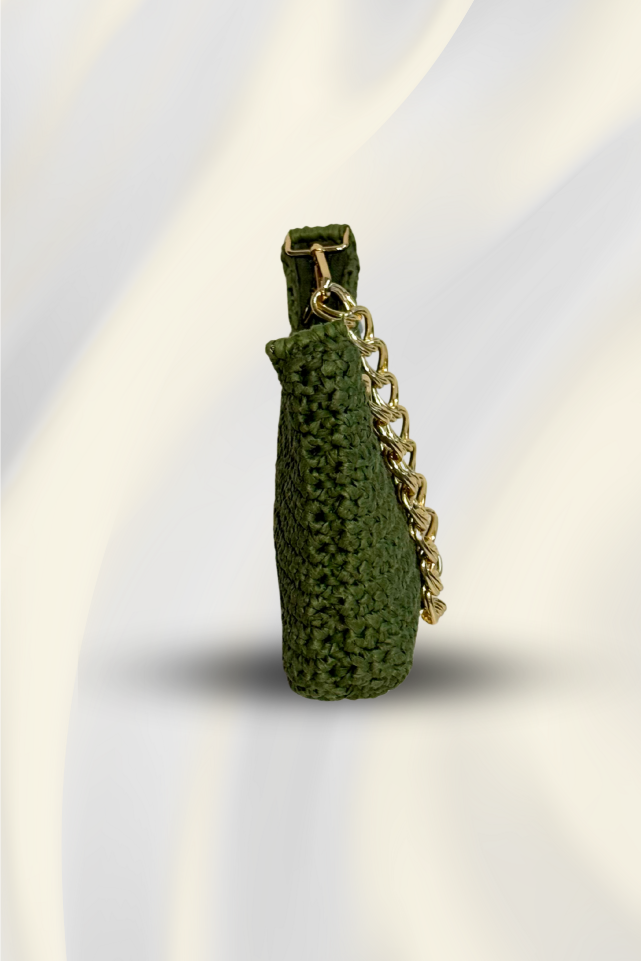 Rafya Omuz Çantası – Doğal Işıltı - Haki