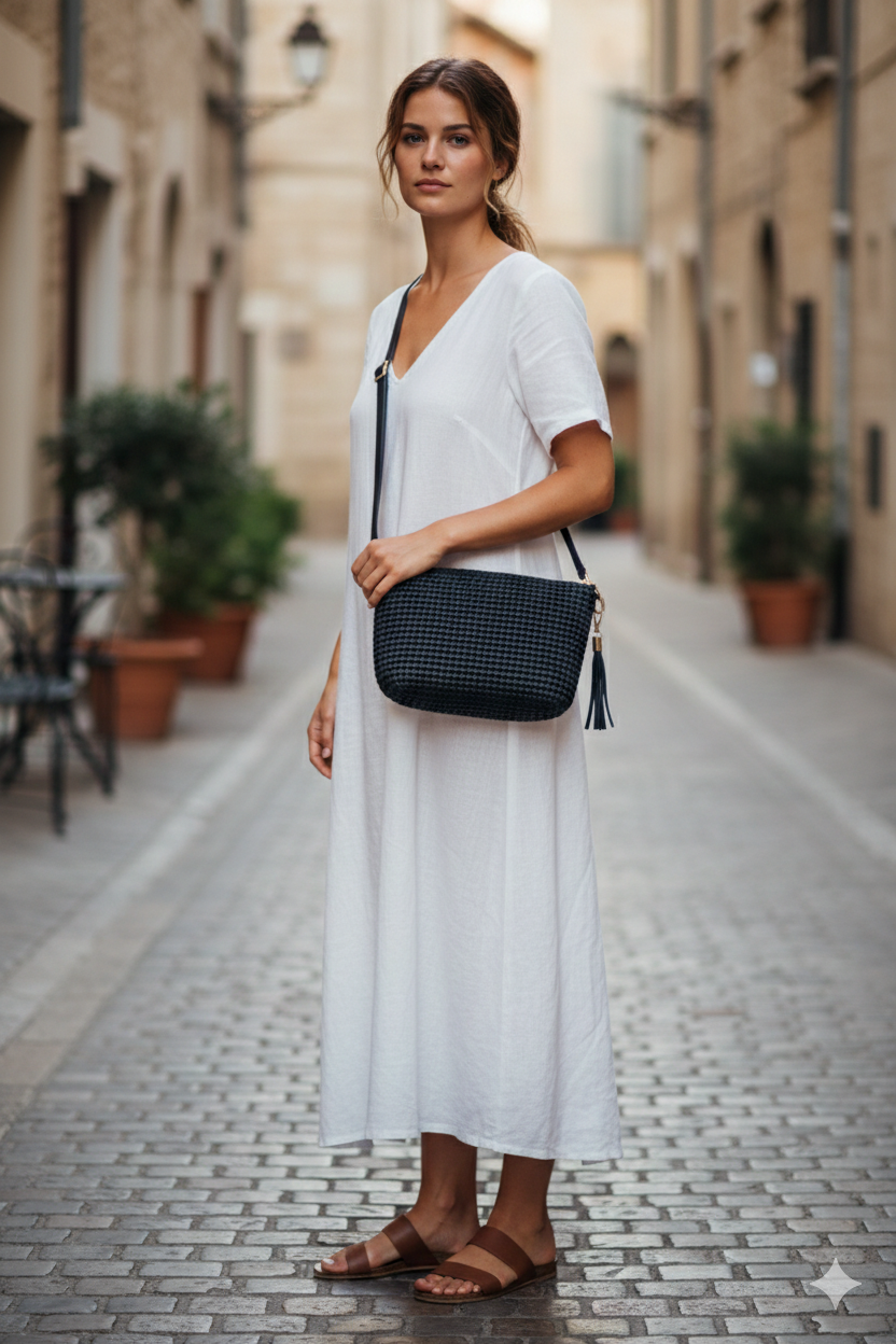 Saten Rafya Çapraz Çanta – Günlük Sadelik - Siyah