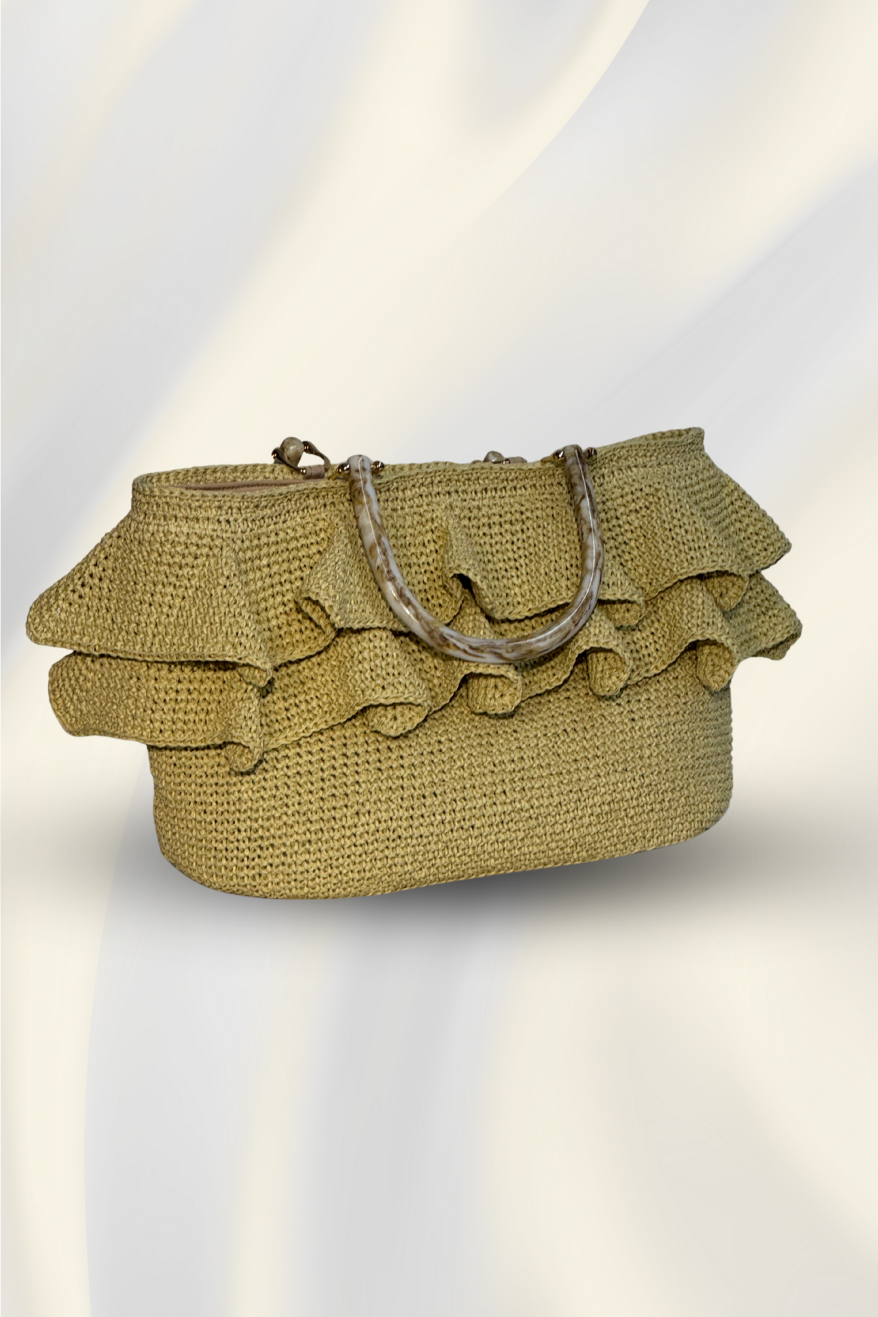 Volanlı Hasır Tote tarzınıza yazın enerjisini taşıyın.