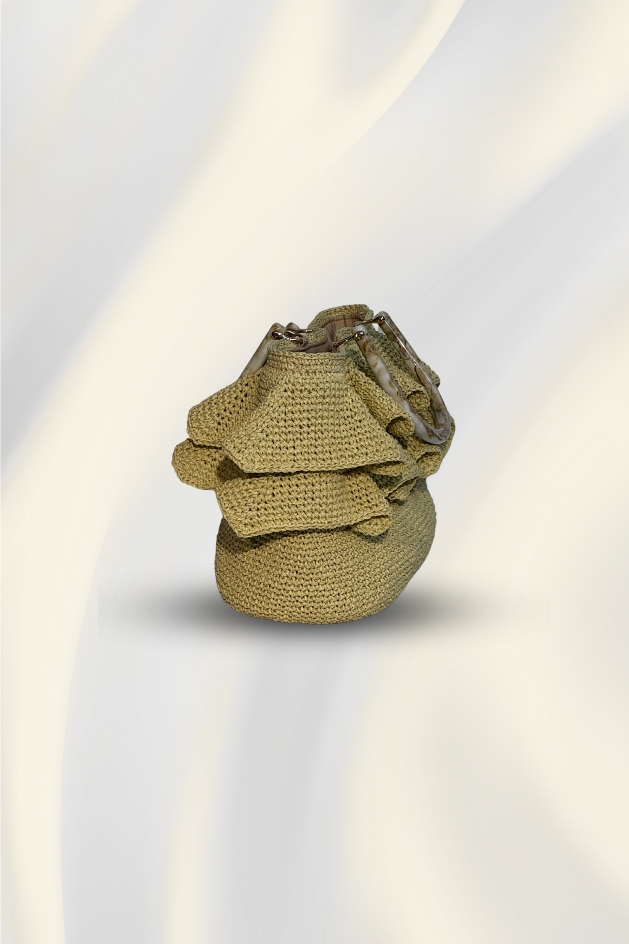 Volan Detaylı Hasır Çanta - Zarafetin Doğal Hali - Krem