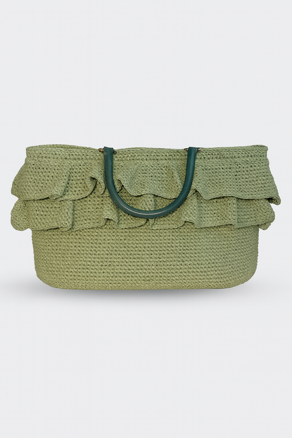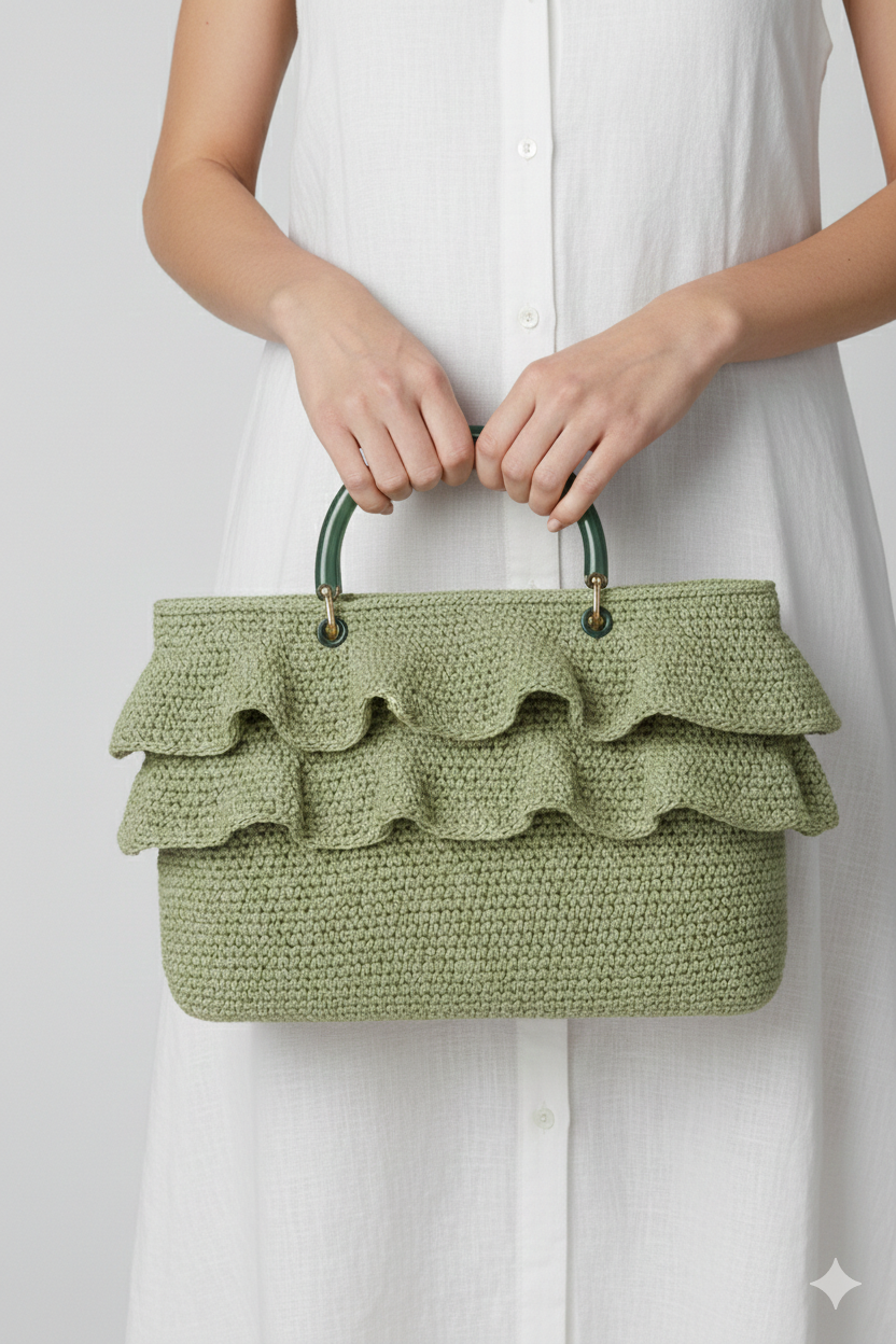 Volan Detaylı Hasır Çanta - Zarafetin Doğal Hali - Su Yeşili