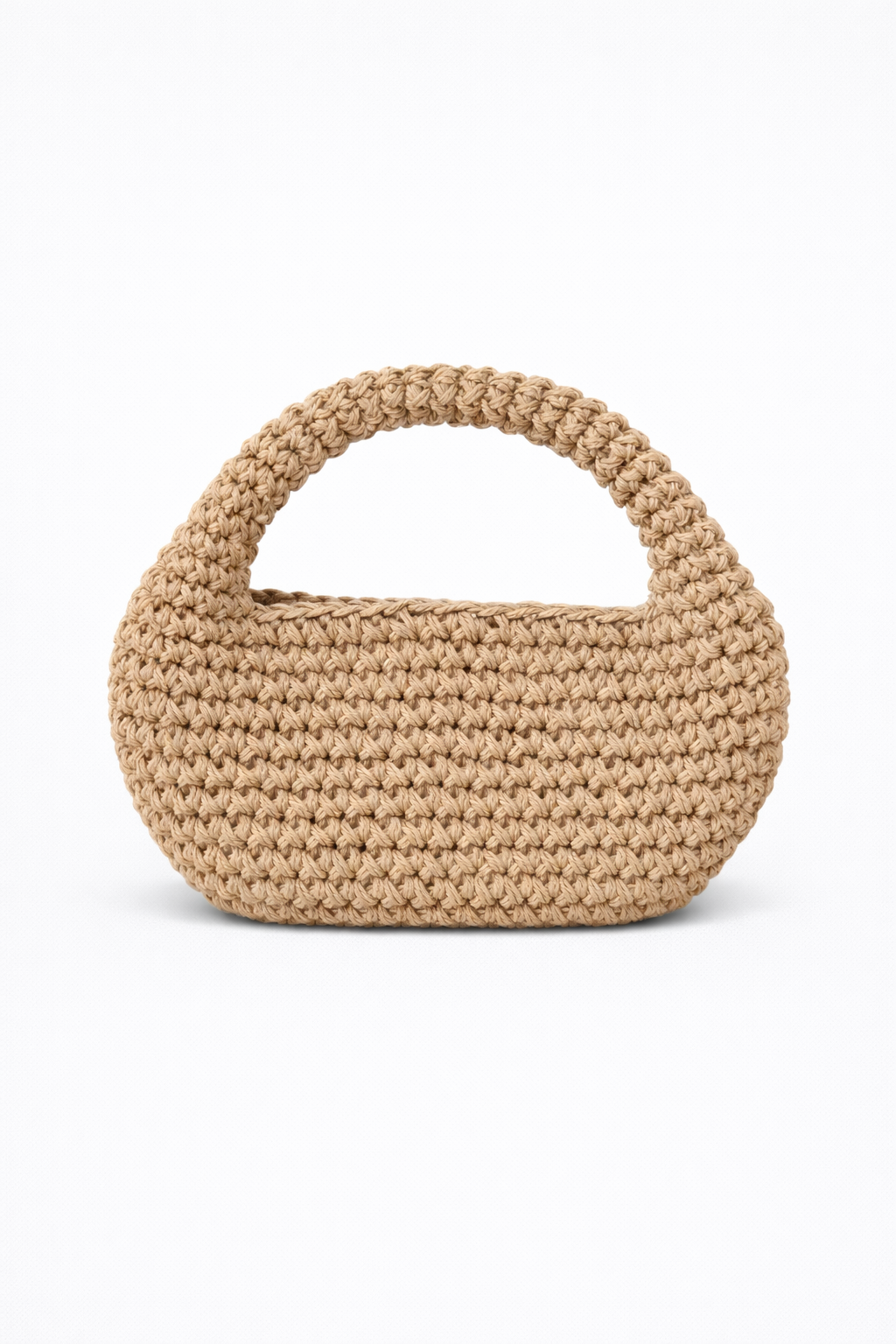 El yapımı örgü dokusu ve yarım ay formuyla dikkat çeken bu çanta, modern tasarımı doğal bir estetikle buluşturur. Yumuşak kıvrımları ve hacimli yapısı sayesinde hem şık hem de kullanışlı bir deneyim sunar. Günlük şehir stilinden hafta sonu kombinlerine kadar zamansız bir tamamlayıcıdır.