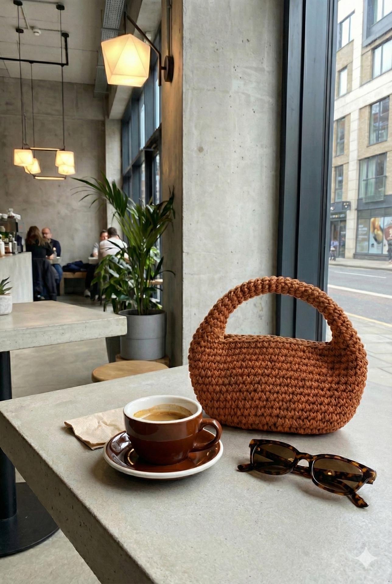 El yapımı örgü dokusu ve yarım ay formuyla dikkat çeken bu çanta, modern tasarımı doğal bir estetikle buluşturur. Yumuşak kıvrımları ve hacimli yapısı sayesinde hem şık hem de kullanışlı bir deneyim sunar. Günlük şehir stilinden hafta sonu kombinlerine kadar zamansız bir tamamlayıcıdır.